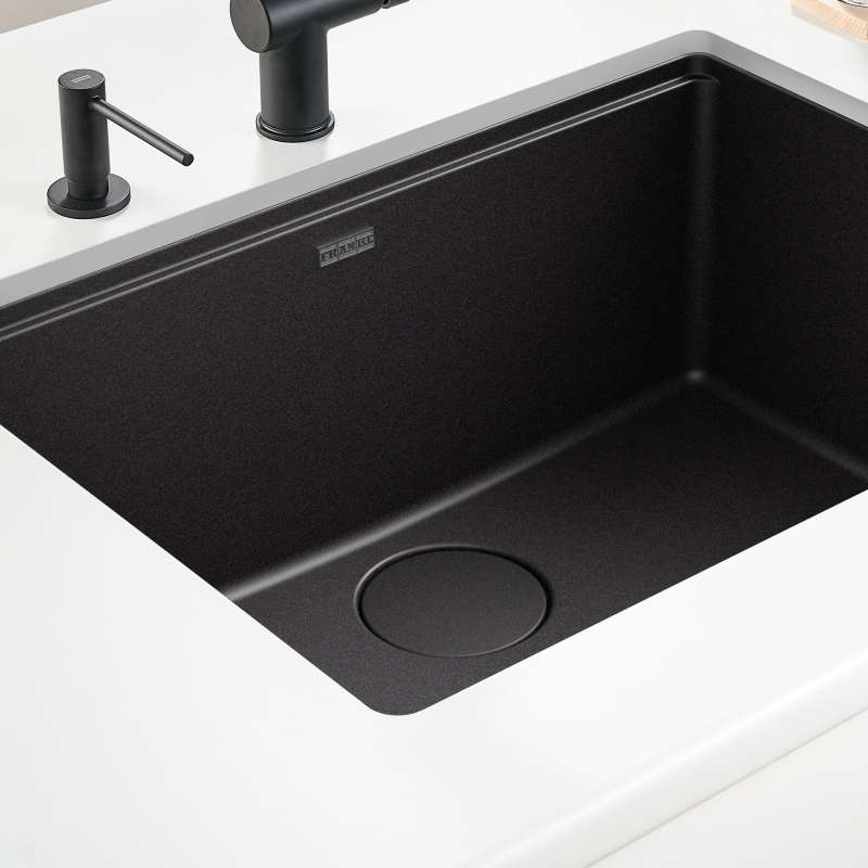 The Franke Colorline removable drain cover conceals the drain for a seamless bowl surface while providing a flat bottom for a more usable workspace. The drain, strainer basket and waste disposer are hidden to maintain the elegant design of your Franke sink.