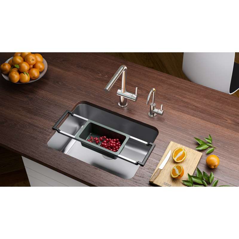 8.75-in Universal Filtration J Spout Cold Water Dispenser in Polished Chrome. Constructed with 100% lead-free 304 stainless steel, a naturally hygienic surface that is corrosion and tarnish-resistant, resulting in a high-performance and low-maintenance faucet. Proportionately sized and available in a variety of finishes to complement any products in the Franke faucet portfolio. Bring wellness home by pairing the UNJ-FW-CHR with our CT-200 chiller tank and Franke Filtration system (sold separately) and provide your family with an on-demand flow of clean, safe, cold filtered water directly from your kitchen filtration faucet.