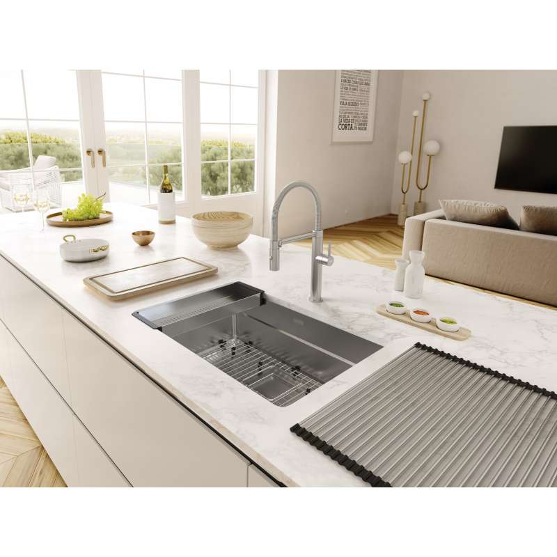 Designed with a professional aesthetic and superior construction, a Franke Pescara faucet adds a touch of sophistication and convenience to your kitchen. Its solid 304 stainless steel construction provides corrosion resistance inside and out, while its flexible coil spring hose ensures full sink coverage. Plus, an intuitive, quick-release magnetic dock securely holds the spray head when not in use. The tall arched design also offers exceptional space for cleaning or filling large pots and pans. With its superior quality and stylish design, a Pescara faucet is an excellent upgrade for any kitchen.