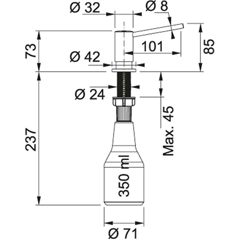 An inspired soap dispensing solution for the kitchen, Franke soap dispensers are counter-sunk for an elegant look, leaving only the dispensing head visible. This soap dispenser matches the Franke Steel modern and sleek faucet family.