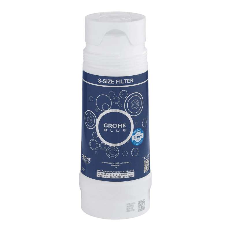 The GROHE Blue S-size filter (capacity 158.5 gallons / 600L) turns ordinary tap water into a premium table water through five purification phases, the water is continually refined into a softer potable water with a wonderful taste.