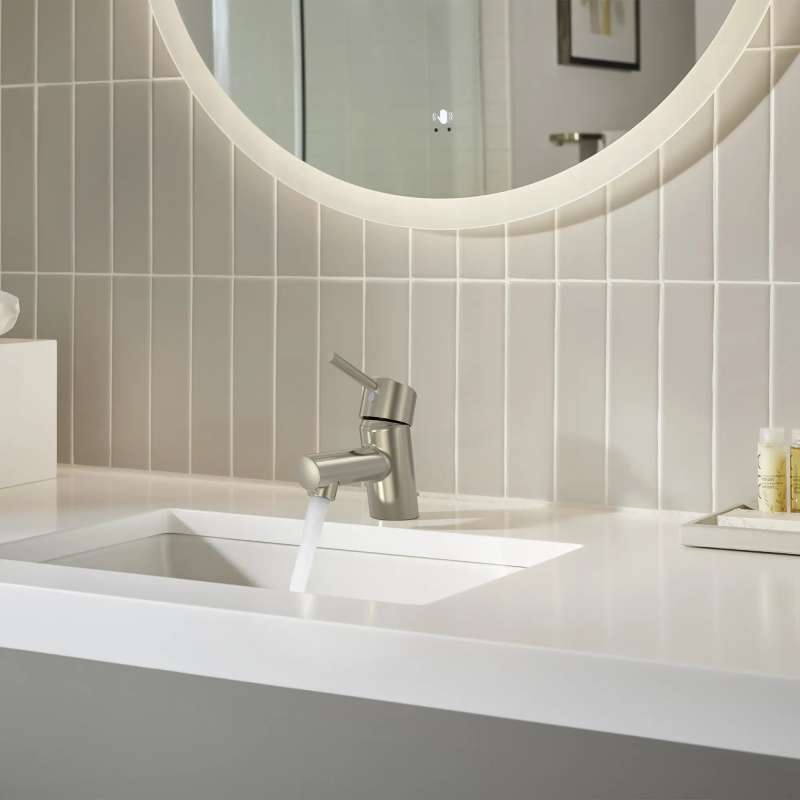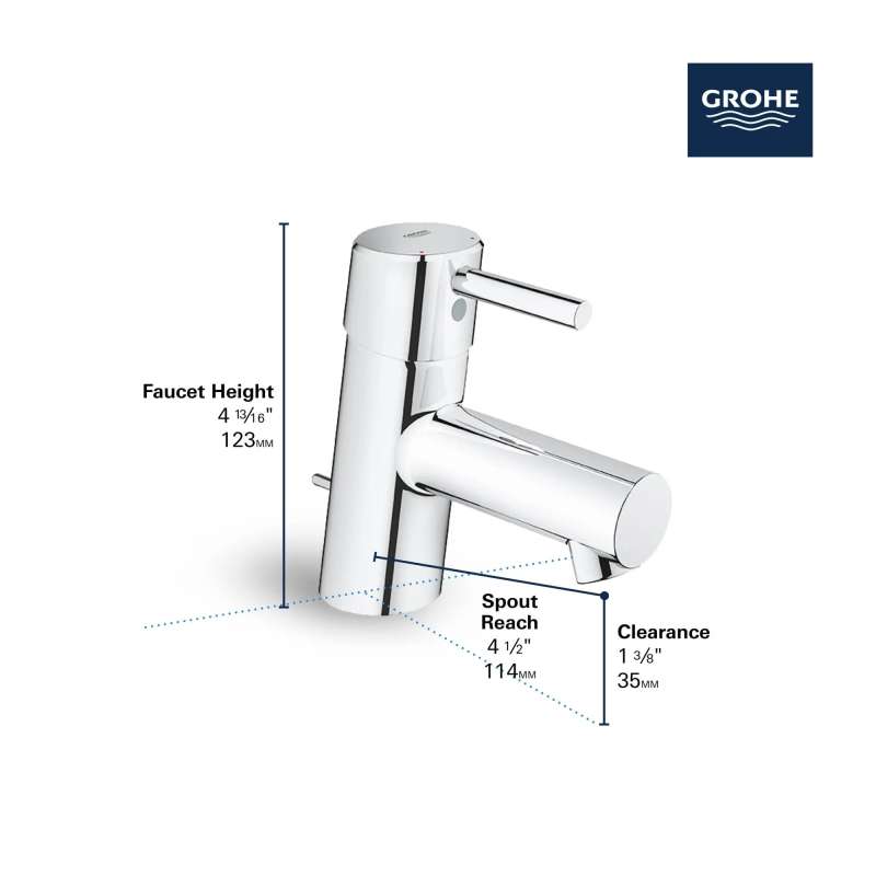 The GROHE Concetto Single-Handle Bathroom Faucet is sleek and practical with its slightly angled profile allowing water to flow in an outward direction, creating more ease of use and access. Convenient, single-handle faucet has a clean, minimalist look offering smooth control of water flow and temperature with the exacting precision characteristic of the GROHE standard of excellence. Available in an array of exquisite finishes that add interest to every bathroom.