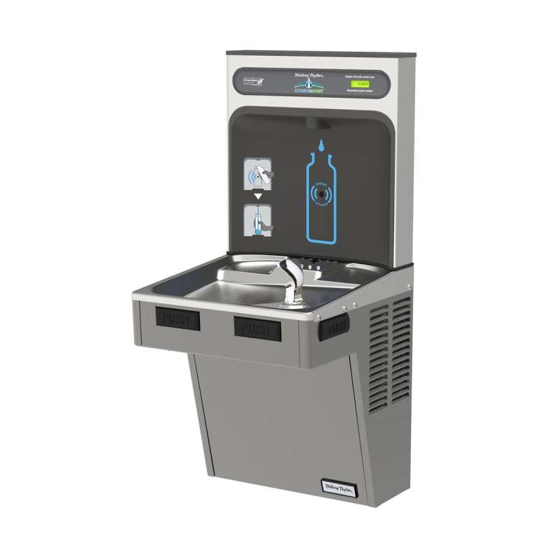 The Halsey Taylor HydroBoost Bottle Filling Station delivers a clean quick water bottle fill and enhances sustainability by minimizing our dependency on disposable plastic bottles. Complete cooler and bottle filling station in a consolidated space saving ADA compliant design. Bottle Filler features sanitary no-touch sensor activation with automatic 20-second shut-off timer.