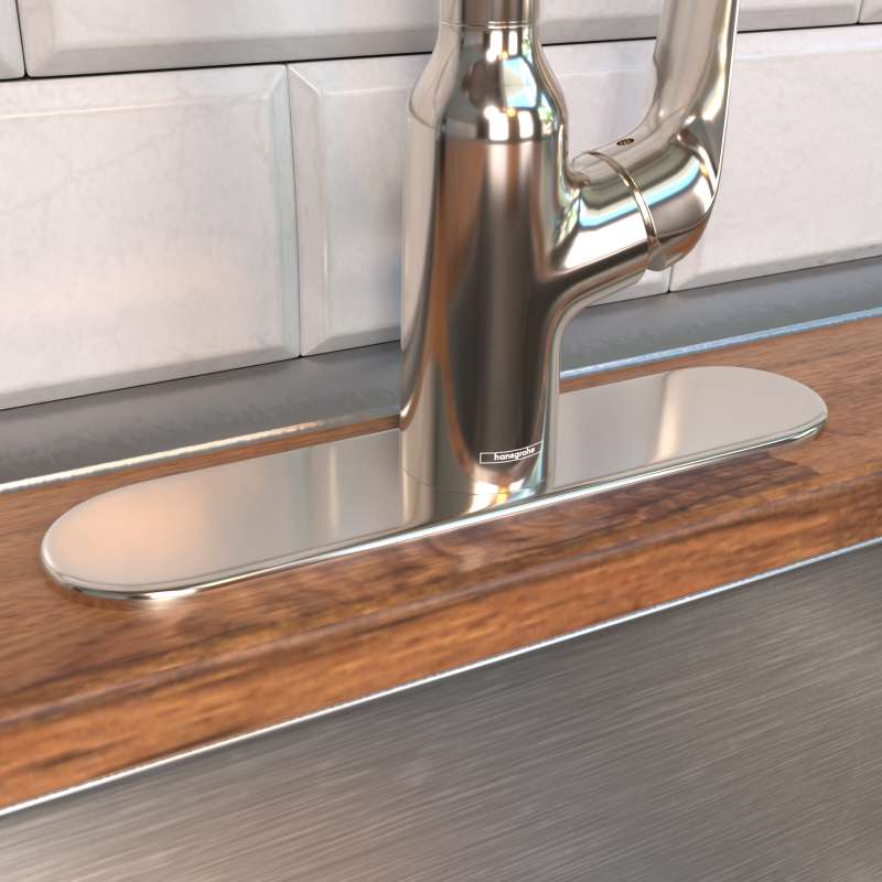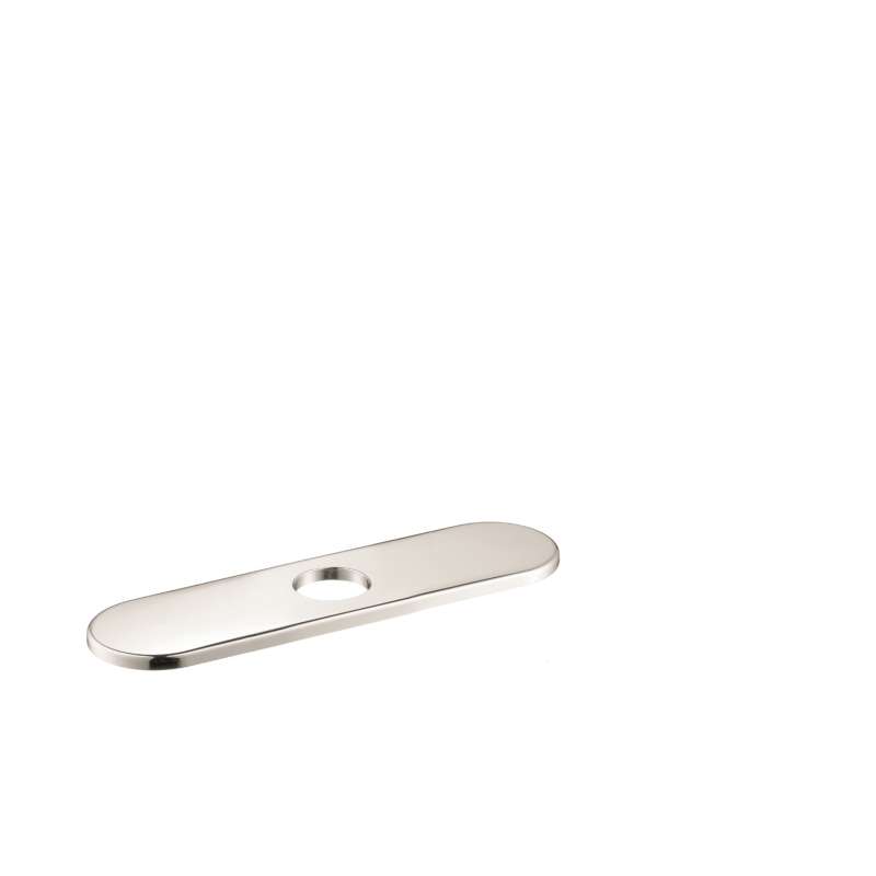 The hansgrohe baseplate allows you to install a single-hole faucet in a multi-hole counter setup. It is available in all coordinating finishes to keep your fixtures looking polished.