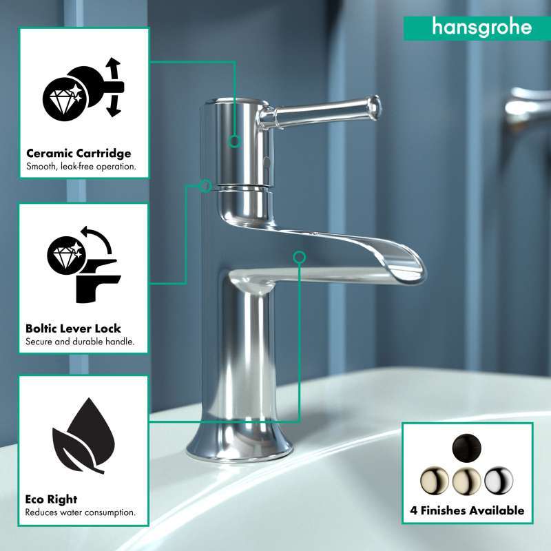 Design With a range of models and styles, paired with the quality and design you expect from hansgrohe, dream bathrooms become a reality. Bath faucets by hansgrohe exude beautiful design with superior performance and durability. Pick your desired faucet, then browse the entire product suite for complementary accessories. German engineering ensures a lifetime of consistent and dependable operation. Maintenance Products that function perfectly are essential. To ensure that they do, every hansgrohe product 100% air tested in production. hansgrohe faucets feature a silicone aerator that optimizes water flow performance, resists mineral deposit build-up, and is designed to be easily wiped clean. Installation Can be installed in existing 1 or 3 hole counter configurations. Standard 3/8-inch pipe connection hoses included (attached). Baseplate sold separately. Please comply with all local, state, and federal plumbing codes and regulations. Installation instruction link below. Customer Support customerservice@hansgrohe.com | 1 (800) 334-0455 | Limited Lifetime Warranty | Installation / User Guide / Warranty PDF links below
