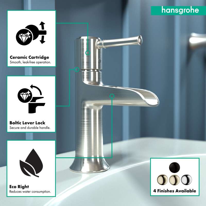 Design With a range of models and styles, paired with the quality and design you expect from hansgrohe, dream bathrooms become a reality. Bath faucets by hansgrohe exude beautiful design with superior performance and durability. Pick your desired faucet, then browse the entire product suite for complementary accessories. German engineering ensures a lifetime of consistent and dependable operation. Maintenance Products that function perfectly are essential. To ensure that they do, every hansgrohe product 100% air tested in production. hansgrohe faucets feature a silicone aerator that optimizes water flow performance, resists mineral deposit build-up, and is designed to be easily wiped clean. Installation Can be installed in existing 1 or 3 hole counter configurations. Standard 3/8-inch pipe connection hoses included (attached). Baseplate sold separately. Please comply with all local, state, and federal plumbing codes and regulations. Installation instruction link below. Customer Support customerservice@hansgrohe.com | 1 (800) 334-0455 | Limited Lifetime Warranty | Installation / User Guide / Warranty PDF links below