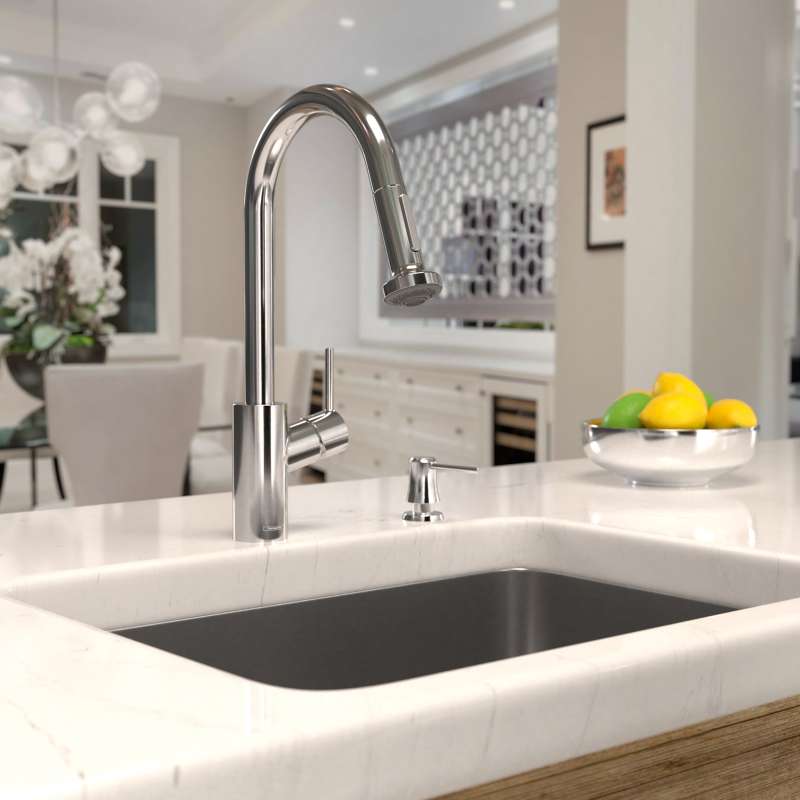 Are you looking for an excellent kitchen helper that combines modern design and many functional details at the sink? The hansgrohe Talis S kitchen faucet range blends in perfectly with any kitchen and is available in different versions - from the basic model right up to faucets with high swivel spouts and hand sprays. Talis faucets are high-quality in form and function. Their conical basic shape gives them an elegant look. And the large areas with their precise transitions are Easy to clean. And if you simply rub the QuickClean silicone inserts on the faucet spout with your finger, limescale has no chance. Your kitchen faucet will be gleaming as good as new in no time. The MagFit magnetic holder fixes the hand spray securely in place on the middle of the spout after use.