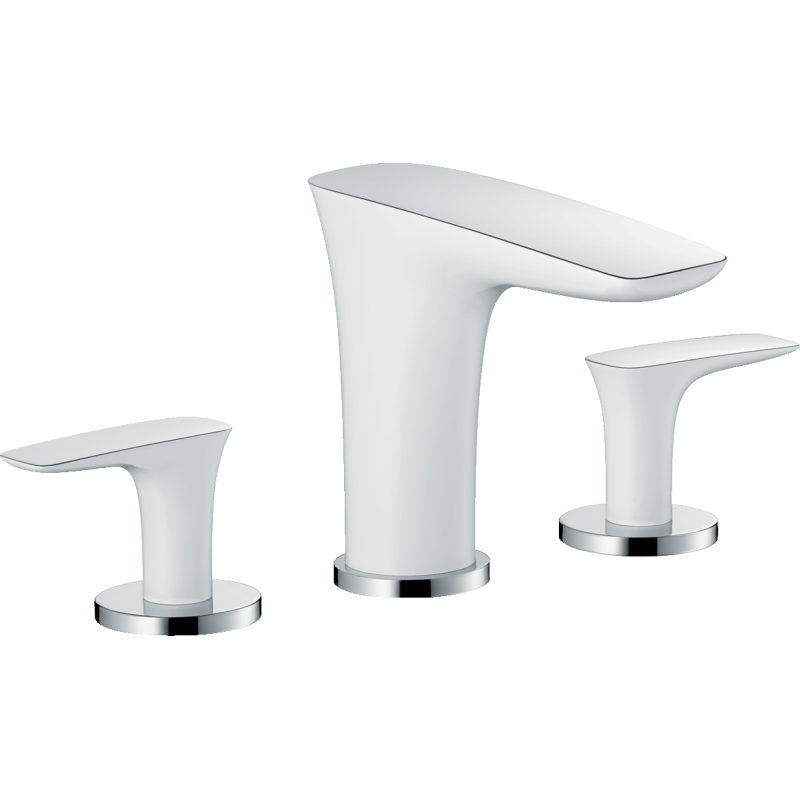 With its impressive form and mix of finishes, PuraVida faucets bring a new dimension of adventure to your bathroom. Finishing in the DualFinish process creates precise transitions and exciting contrasts - white and chrome seem in a competition to outshine one another. Thanks to scratch-resistant powder coating, both the look and functionality of this collection is long lasting. The avantgarde joystick handle used to smoothly and intuitively operate the faucet is truly a source of delight. PuraVida lavatory faucets help you save water and energy: An integrated flow limiter curbs your consumption to 1.2 gallons per minute. With QuickClean, you can simply rub limescale away from the spout with your finger.