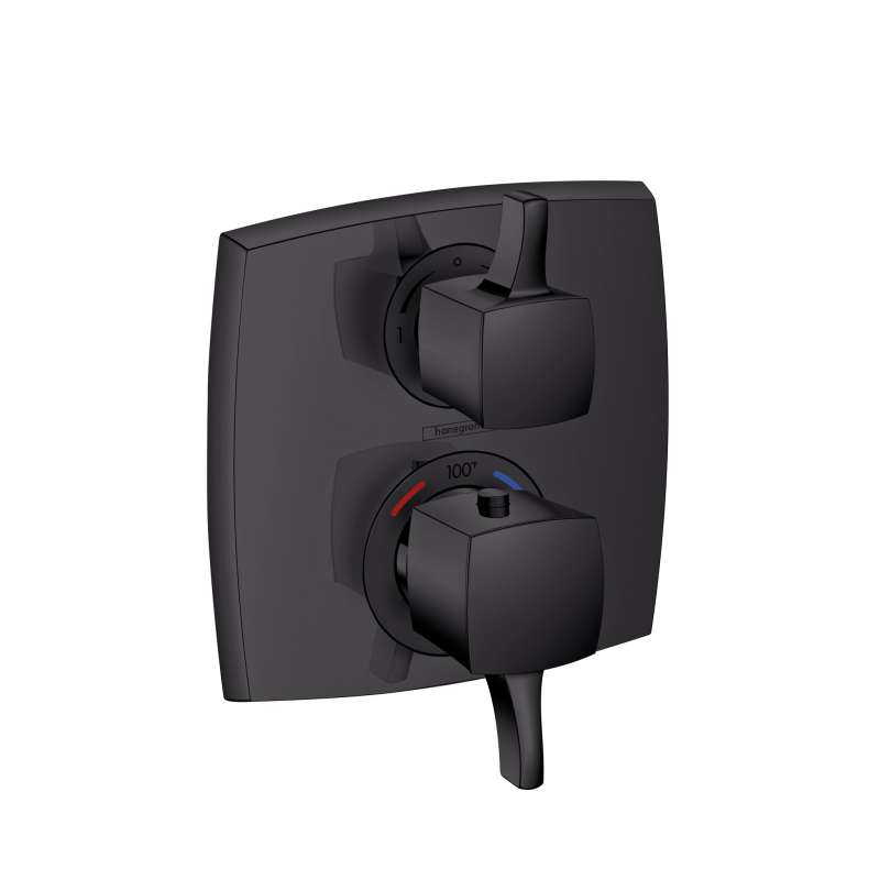 Hansgrohe Ecostat Classic Thermostatic Trim With Volume Control And Diverter, Square In Matte Black, 15728671 Matte Black