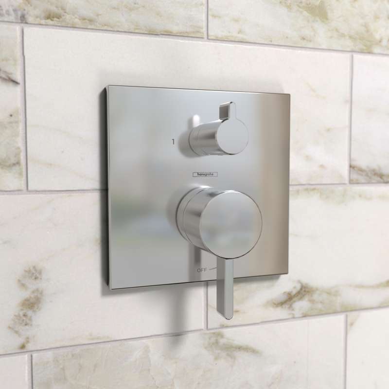 • Hansgrohe Ecostat Pressure Balance Trim Square With Diverter In Chrome, 15862001 Chrome