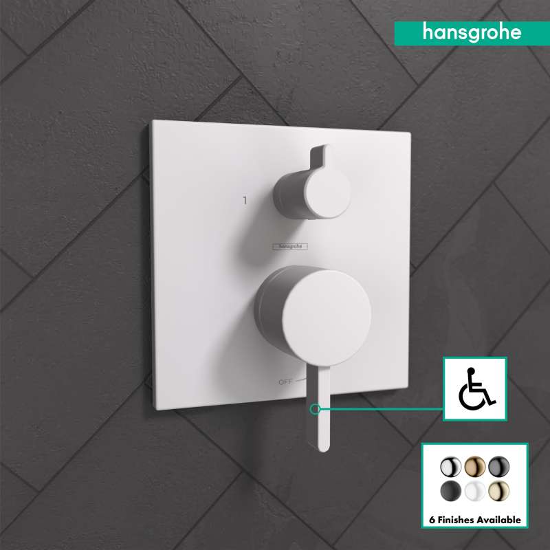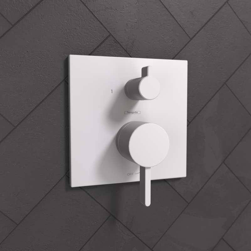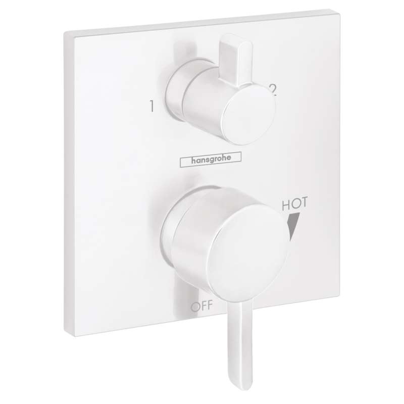 • Hansgrohe Ecostat Pressure Balance Trim Square With Diverter In Matte White, 15862701 Matte White