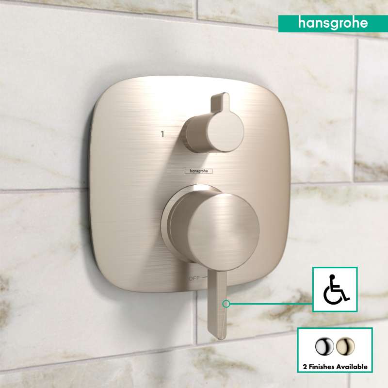 • Hansgrohe Ecostat Pressure Balance Trim Square With Diverter In Brushed Nickel, 15862821 Brushed Nickel