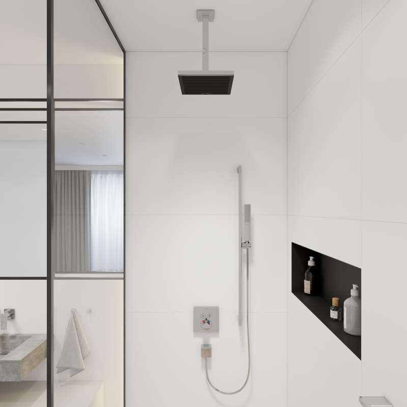 Your stylish companion: Wall connection for hansgrohe Pulsify E shower head The Pulsify wall connection for the 260 overhead shower by hansgrohe is the perfect addition to the Pulsify shower head. The modern shower arm mounts to the wall and ensures the 10.2 in overhead shower is in perfect position. The slim, linear design and angular escutechon also make it a real eye-catcher. The wall connection and Pulsify shower head combination creates a stylish ambience in your bathroom. The brilliant, easy-care chrome finish makes for a brilliant appearance and impresses with long-lasting shine in proven Hansgrohe quality.