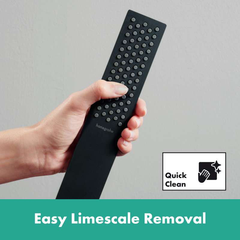 Design icon as an overall package: Pulsify E shower head in Matte black with PowderRain, shower hose and shower rail (24-inch) The Pulsify E 100 1-spray shower set with shower rail of 24-inch from hansgrohe ensures invigorating refreshment while showering. The unique hansgrohe PowderRain Spray type wraps your body in the finest water droplets and refreshes - whether in the morning for a burst of energy or during a relaxing shower after a busy day. The striking minimalist shape of the shower head draws attention and is a natural choice for personalised bathroom design. These products are available in different coloured finishes, It is available in polished chrome, fresh white and bold black.