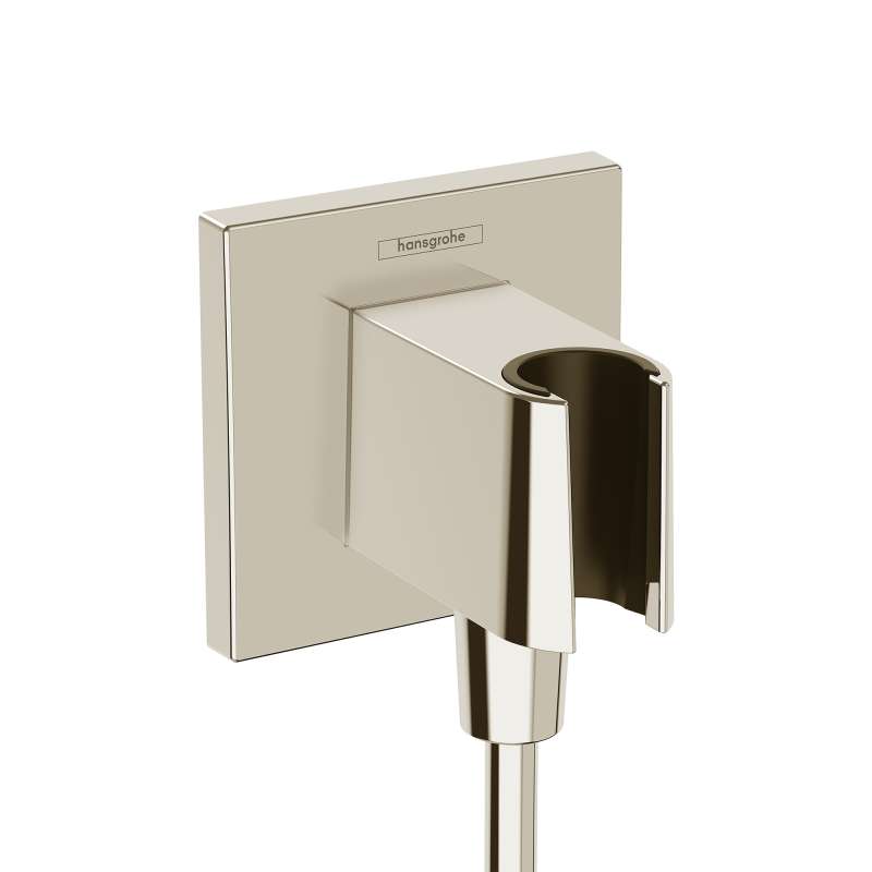 Practical can be so beautiful: hansgrohe FixFit E wall connection with shower head holder The FixFit E wall connection with shower support from hansgrohe provides a water connection and a secure hold for the shower head. This looks beautiful and also creates more space in the shower with its compact dimensions. Water volume and temperature can be adjusted via a concealed tap, sold separately. With its square wall flange, the hansgrohe FixFit E wall connection pairs particularly well with a geometric faucet design. Installation is extremely simple: the FixFit E is screwed onto an existing water outlet on the wall (size G 1/2; DN15). After that, any commercially available shower hose can be connected. All hoses with a conical nut will fit into the holder - including shower hoses from the hansgrohe range that are identical in color also. You can create your own dream bathroom without much effort.