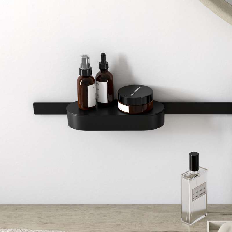 WallStoris cover: more space even in small bathrooms The WallStoris cover for the storage tray is part of the range of smart accessories from hansgrohe. Finally, there is an personalized and stylish solution for storing all the items in the bathroom, that looks good and is as durable as it is flexible. The WallStoris line provides more storage space in small bathrooms, perfect for apartments and dorm rooms. The cover fits onto the separately available WallStoris storage trays and prevents water from flowing in. The flat cover offers an additional shelf also. The shelf is clipped onto the separately available WallStoris mounting rail. There it can be moved around as desired and removed again also. The mounting rail installs securely on the wall. Various shelves, hooks and many other WallStoris accessories can be conveniently combined. Simply clip it on, slide it over, and you're done! This offers you plenty of storage space for shower gels, etc. For an uncluttered and cozy bathroom. The modular bathroom accessories come in Matte white or Matte black.