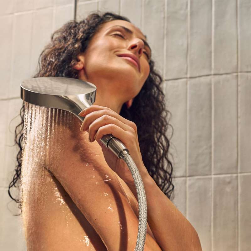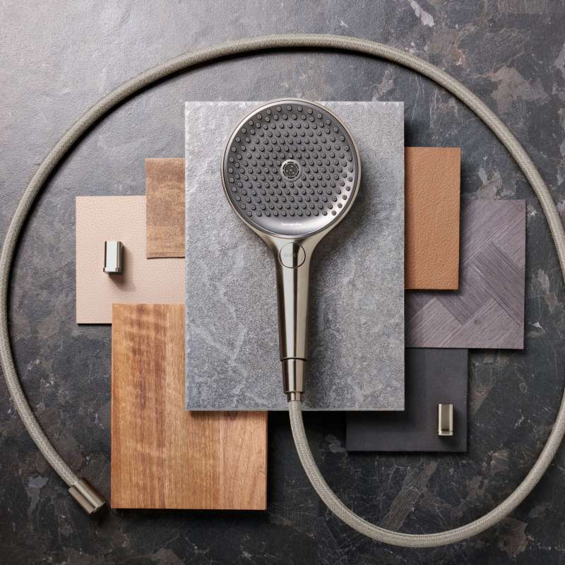 Effortless showering: Designflex textile shower hose from hansgrohe in brushed nickel (63-inch). Experience a completely new showering sensation with the Designflex textile shower hose. Because the world exclusive from hansgrohe is significantly lighter than a comparable hansgrohe shower hose. Designflex consists of multi-colored, braided yarns that offer even more freedom of movement and flexibility. When showering, the cotton-like material pampers you with a pleasantly warm and soft feeling on the skin.The multi-colored textile mesh fascinates with an individual design that perfectly matches the colors of the FinishPlus finishes of hansgrohe showers and mixers. Together, they create a cozy ambience and transform your shower into an oasis of well-being. hansgrohe Designflex - the magic is in the detail. A sense of well-being: The yarns used are made from recycled PET and thus help protect the environment. Known and proven in outdoor and water sports: the high-density braid is waterproof, dirt-repellent and extremely long-lasting. Extra clean: the shower hose is easy to clean and is even dishwasher safe up to 140 degF. Universally suitable: hansgrohe Designflex fits every shower head and every normal water connection (1/2 inch)