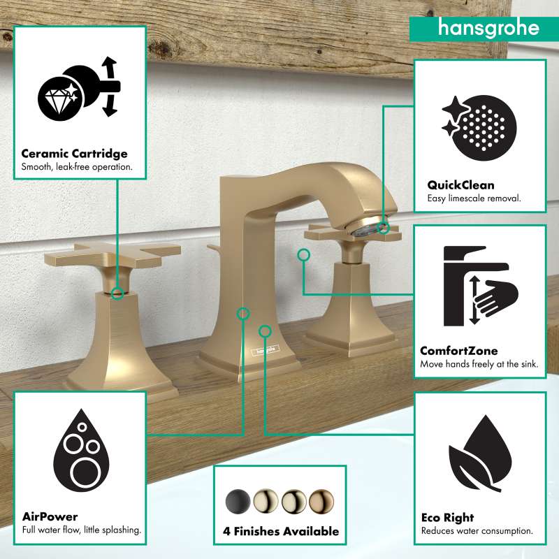 • Hansgrohe Metropol Classic Widespread Faucet 110 With Cross Handles And Pop-Up Drain, 1.2 Gpm In Brushed Bronze, 31306141 Brushed Bronze