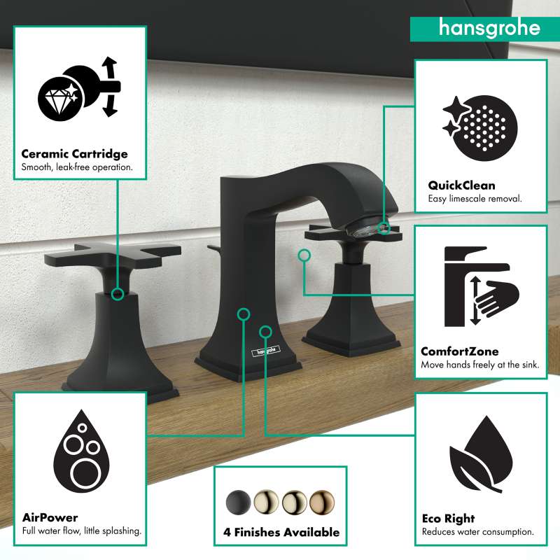 • Hansgrohe Metropol Classic Widespread Faucet 110 With Cross Handles And Pop-Up Drain, 1.2 Gpm In Matte Black, 31306671 Matte Black