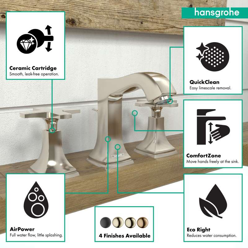 Hansgrohe Metropol Classic Widespread Faucet 110 With Cross Handles And Pop-Up Drain, 1.2 Gpm In Polished Nickel, 31306831 Polished Nickel