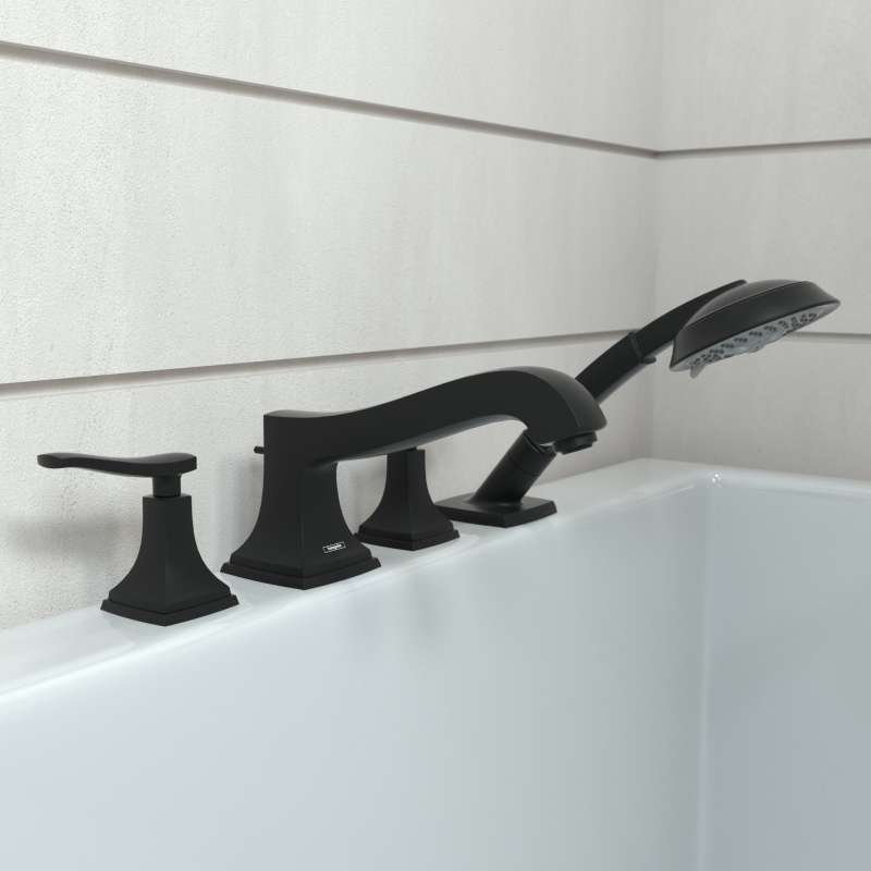 • Hansgrohe Metropol Classic 4-Hole Roman Tub Set Trim With Lever Handles And 1.8 Gpm Handshower In Matte Black, 31441671 Matte Black