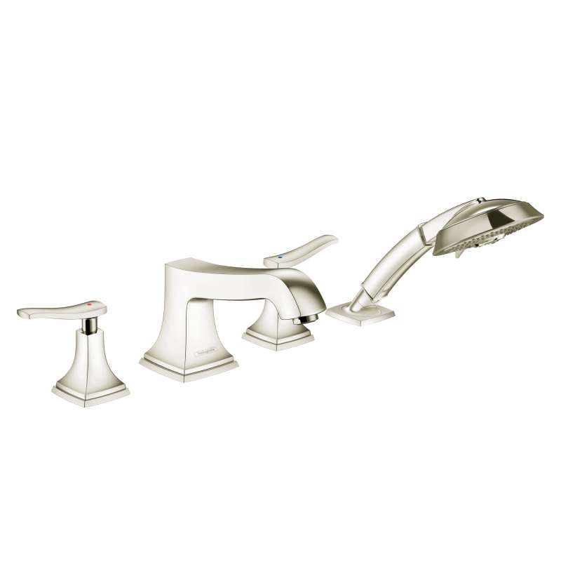 • Hansgrohe Metropol Classic 4-Hole Roman Tub Set Trim With Lever Handles And 1.8 Gpm Handshower In Polished Nickel, 31441831 Polished Nickel
