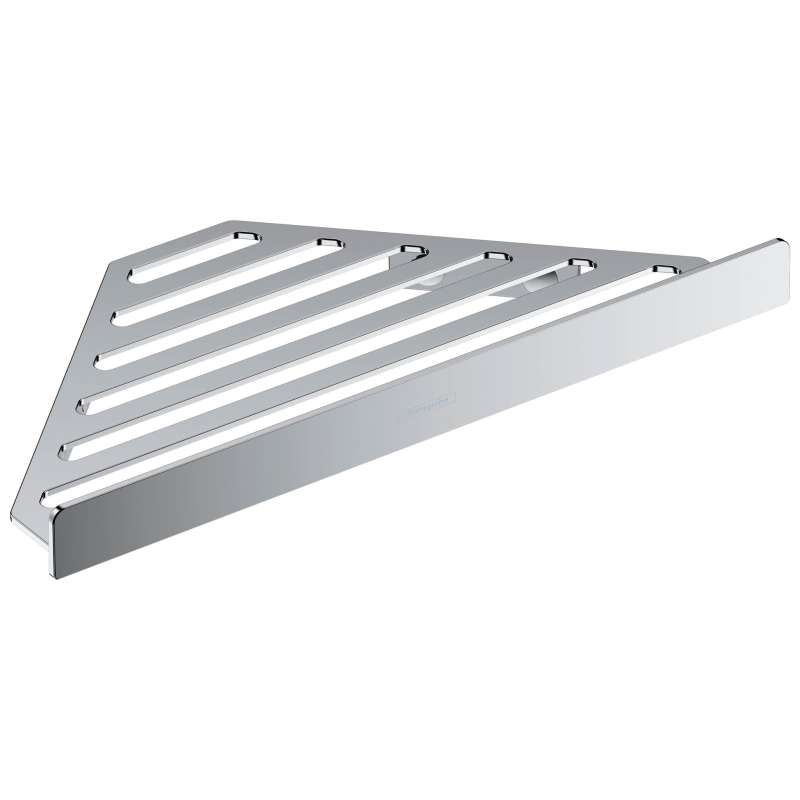 Elegant corner metal shower caddy The practical AddStoris soap dish from hansgrohe brings order to the bathroom and shower. The elegant corner shelf offers plenty of space for shampoo etc. This means that personal care products are always at hand. The modern and reduced design impresses with a clear, expressive design. It fits particularly well with geometric bathroom fittings, such as the hansgrohe line Metropol. Nice that the hansgrohe quality keeps what the high-quality design promises: the AddStoris corner shelf is made of rust-proof metal and therefore particularly durable. This helps in the sustainable use of resources and reduces the plastic content in the environment. The surface is elaborately chrome-plated and is easy to clean. This means that the brilliant shine is maintained permanently. Easy to install. The shower shelf is reliably attached to the wall by a total of four screws. The drilling distance on both sides is 0.9 in. each.