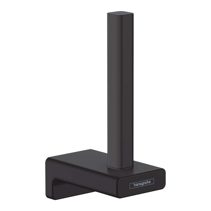Replacement paper roll holder from hansgrohe in matte black. With the AddStoris replacement paper roll holder from hansgrohe the bathroom is both functional and visually enhanced. On the elegant holder, a replacement toilet roll is always at hand. The modern and reduced design impresses with a clear, expressive design. It fits particularly well with geometric bathroom fittings, such as the hansgrohe line Metropol. Nice that the hansgrohe quality holds up to what the high-quality design promises: the AddStoris replacement paper roll holder is made of metal and therefore particularly durable. This helps in the sustainable use of resources and reduces the plastic content in the environment. The matte black surface is easy to clean. It corresponds to the color of the hansgrohe special surfaces for fittings (FinishPlus). So everything fits perfectly together. Easy to install. The replacement toilet roll holder is reliably attached to the wall with two screws. The drilling distance is 0.9 in.