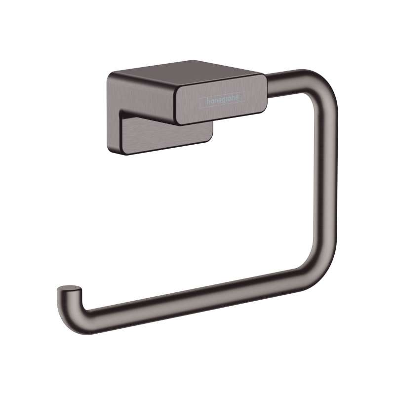 hansgrohe toilet roll holder in brushed black chrome. With the AddStoris toilet roll holder from hansgrohe the bathroom is both functional and visually enhanced. The elegant holder keeps the toilet roll always at hand. The modern and reduced design impresses with a clear, expressive design. It fits particularly well with geometric bathroom fittings, such as the hansgrohe line Metropol. Nice that the hansgrohe quality keeps what the high-quality design promises: the AddStoris toilet roll holder is made of metal and therefore particularly durable. This helps in the sustainable use of resources and reduces the plastic content in the environment. The brushed black chrome surface is easy to clean. It corresponds to the color of the hansgrohe special surfaces for fittings (FinishPlus). So everything fits perfectly together. Easy to install. The toilet roll holder is reliably attached to the wall with two screws. The drilling distance is 0.9 in.