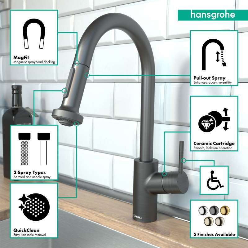 • Hansgrohe Talis S² Prep Kitchen Faucet, 2-Spray Pull-Down, 1.75 Gpm In Brushed Black Chrome, 4286340 Brushed Black Chrome