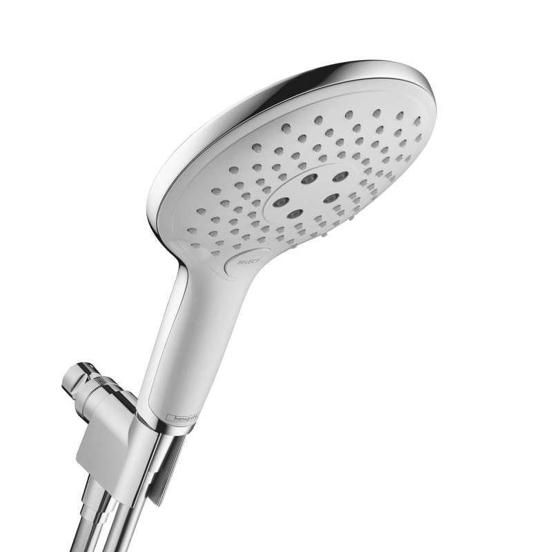 • Hansgrohe Raindance Select S Handshower Set 150 3-Jet, 2.5 Gpm In White/Chrome, 4487400 White/Chrome