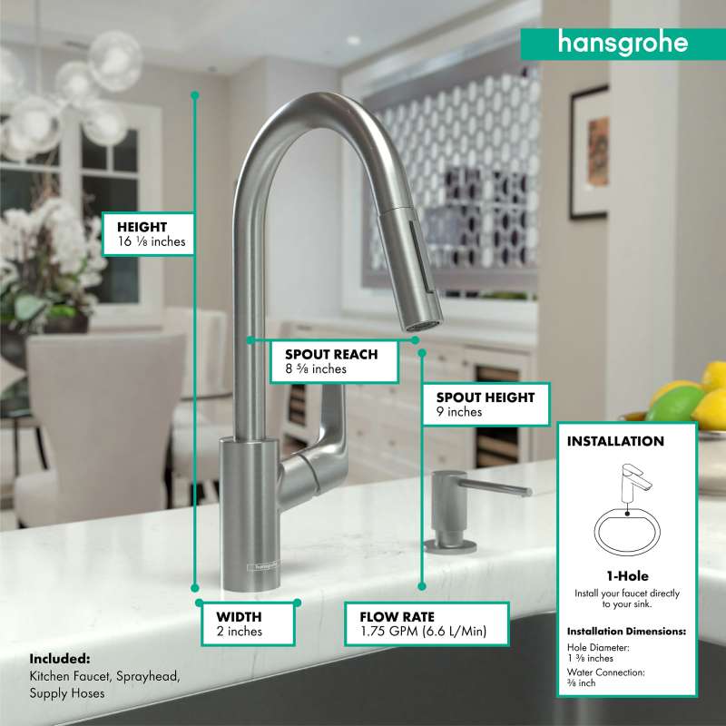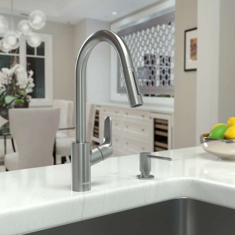 • Hansgrohe Focus Higharc Kitchen Faucet, 2-Spray Pull-Down, 1.75 Gpm In Stainless Steel Optic, 4505800 Stainless Steel Optic