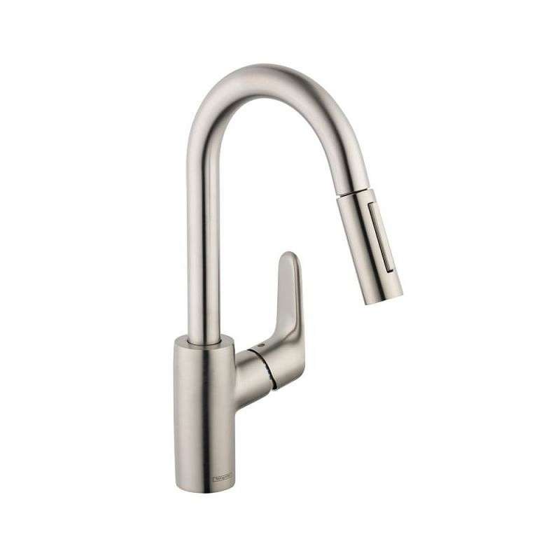 Ergonomic pull-down with full and needle sprays enhances the faucets versatility