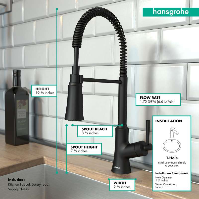 • Hansgrohe Joleena Semi-Pro Kitchen Faucet, 2-Spray, 1.75 Gpm In Matte Black, 4792670 Matte Black