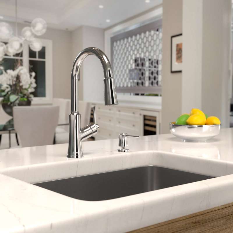 The kitchen is where we gather, the center of our daily routines and family lives. With a wide range of kitchen fixtures, Joleena has products to fille every moment. For the helping hands that need washing and the food that needs rinsing, Joleena is there. The HighArc Kitchen Faucet allows you to have total acces to your kitchen sink, making it Easy to fill your a pot and keep your sink clean thanks to the 180-degree spout. The faucet features an aerated spray, which provides a luxurious feeling and limits the amount of splashing on your countertop. The single-hole design may be installed in either a 1-hole or multi-hole counter setup with the addition of the Joleena baseplate (04797xxx).