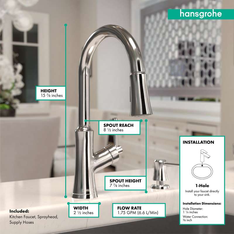 • Hansgrohe Joleena Higharc Kitchen Faucet, 2-Spray Pull-Down, 1.75 Gpm In Chrome, 4793000 Chrome