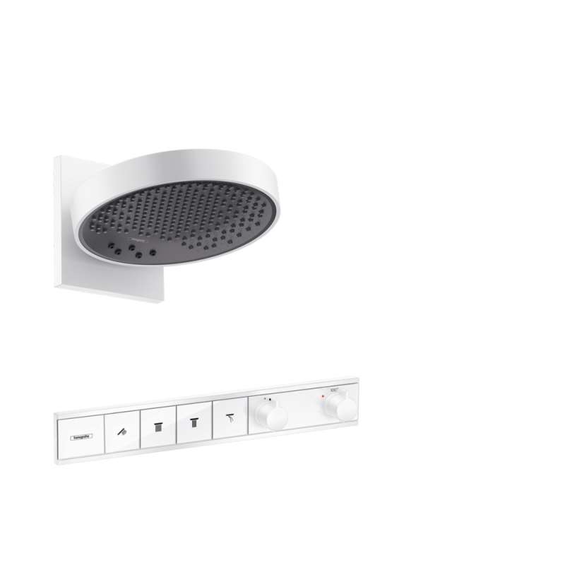 • Hansgrohe Rainfinity Showerhead 250 3-Jet, 2.5 Gpm With Rainselect Thermostatic Trim For 4 Functions In Matte White, 4863700 Matte White