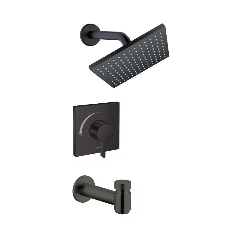 • Included pieces: Vernis Shape 2.5 GPM 1-Jet Showerhead, 9-inch Showerarm, Ecostat Square Pressure Balance Shower Trim, and Metris S Tub Spout with Diverter