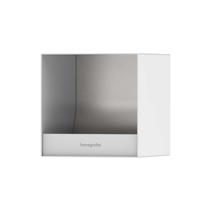 Perfectly integrated: Recessed wall niche in matte white as toilet paper holder from hansgrohe The XtraStoris Original built-in toilet paper holder in matte white from hansgrohe is the elegant solution for a harmoniously designed bathroom. Almost invisible recessed into the wall, the frameless shelf provides a tidy and quiet area around the bathroom. Thanks to its sophisticated design, the reduced wall niche (6 x 6 x 5.5 in - H x W x D) provides a secure hold for the toilet paper roll, which lies loosely on the shelf. It can therefore be changed easily and quickly. With its matte white stainless steel body, the wall niche is a modern eye-catcher in any bathroom ambience. The matte white body matches the color of hansgrohe faucets in matte white. The matte white finish is easy to clean and stays beautiful.