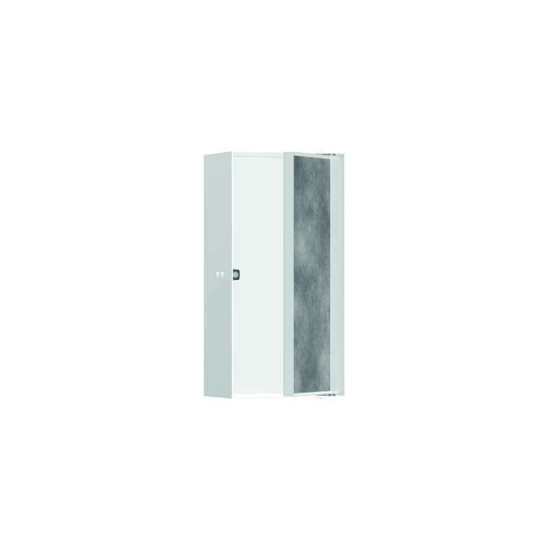 Uniform look: hansgrohe XtraStoris Rock wall niche for the shower area with tiled door. The XtraStoris Rock niche 12 x 6 x 4 in with tiled door from hansgrohe is the modern and flexible shelf solution for a sophisticated shower area. Thanks to its tiled door, the wall niche can be perfectly adapted to the bathroom design. Inconspicuously integrated, the shelf helps create a larger and calmer bathroom. With dimensions of 12 x 6 x 4 in (H x W x D), it offers extra storage space for personal care products. The wall-integrated installation ensures more freedom of movement in the shower. With its matte white stainless steel body, the wall niche is itself a modern eye-catcher, even when the door is open. The box includes the matte white body with tiled door and a waterproof installation and seal set specifically designed for the shower area. This makes it easy to install and safe to use. The push-to-open feature offers convenient use even with soapy hands: open the door with a simple tap. Quality from hansgrohe: The matte white finish is easy to clean and retains its beauty permanently.