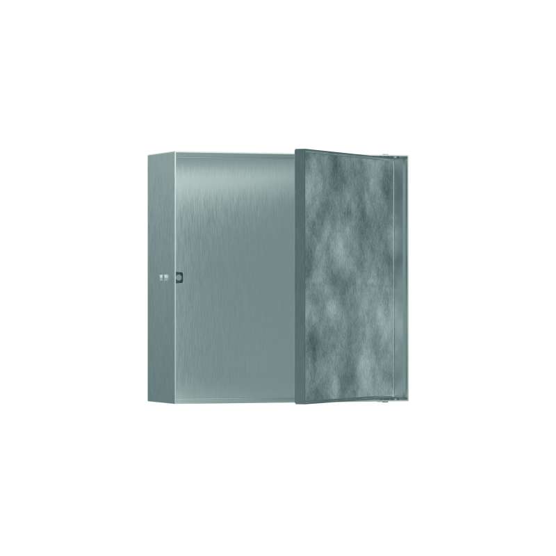 Uniform look: hansgrohe XtraStoris Rock wall niche for the shower area with tiled door. The XtraStoris Rock niche 12 x 12 x 4 in with tiled door from hansgrohe is the modern and flexible shelf solution for a sophisticated shower area. Thanks to its tiled door, the wall niche can be perfectly adapted to the bathroom design. Inconspicuously integrated, the shelf helps create a larger and calmer bathroom. With dimensions of 12 x 12 x 4 in (H x W x D), it offers extra storage space for personal care products. The wall-integrated installation ensures more freedom of movement in the shower. With its brushed stainless steel body, the wall niche is itself a modern eye-catcher, even when the door is open. The box includes the brushed stainless steel body with tiled door and a waterproof installation and seal set specifically designed for the shower area. This makes it easy to install and safe to use. The push-to-open feature offers convenient use even with soapy hands: open the door with a simple tap. Quality from hansgrohe: The brushed stainless steel finish is easy to clean and retains its beauty permanently.