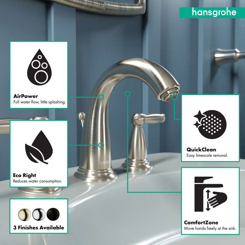 • Hansgrohe Swing C Widespread Faucet With Pop-Up Drain, 1.2 Gpm In Brushed Nickel, 6117820 Brushed Nickel
