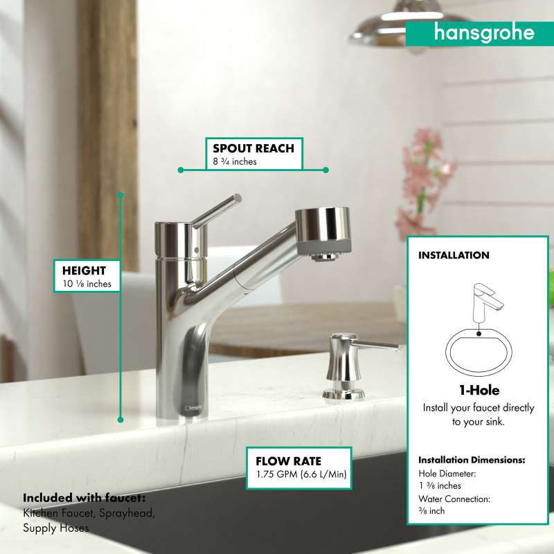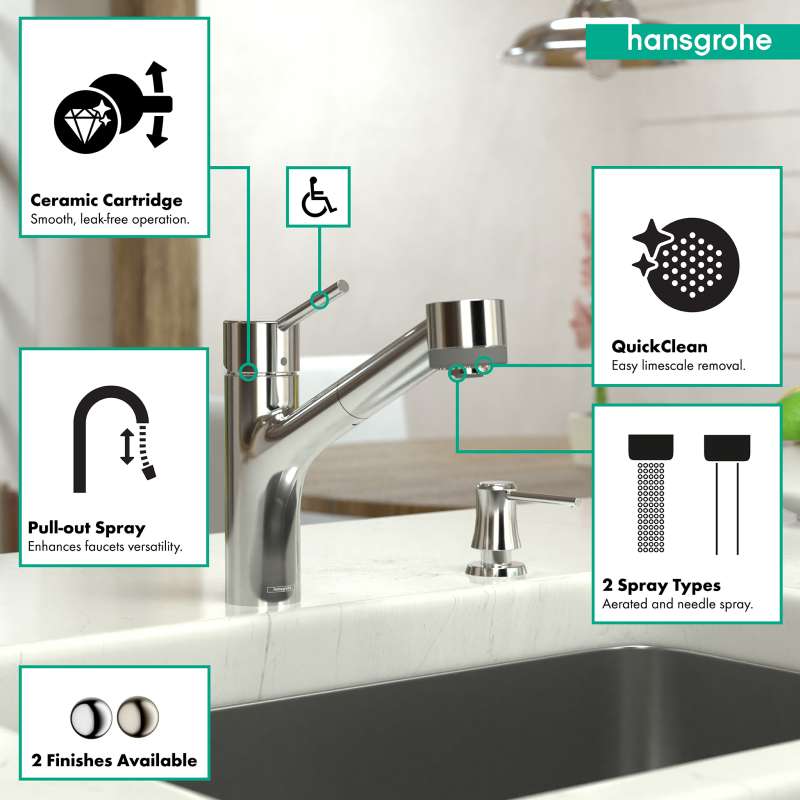 • Hansgrohe Talis S Kitchen Faucet, 2-Spray Pull-Out, 1.75 Gpm In Stainless Steel Optic, 6462860 Stainless Steel Optic