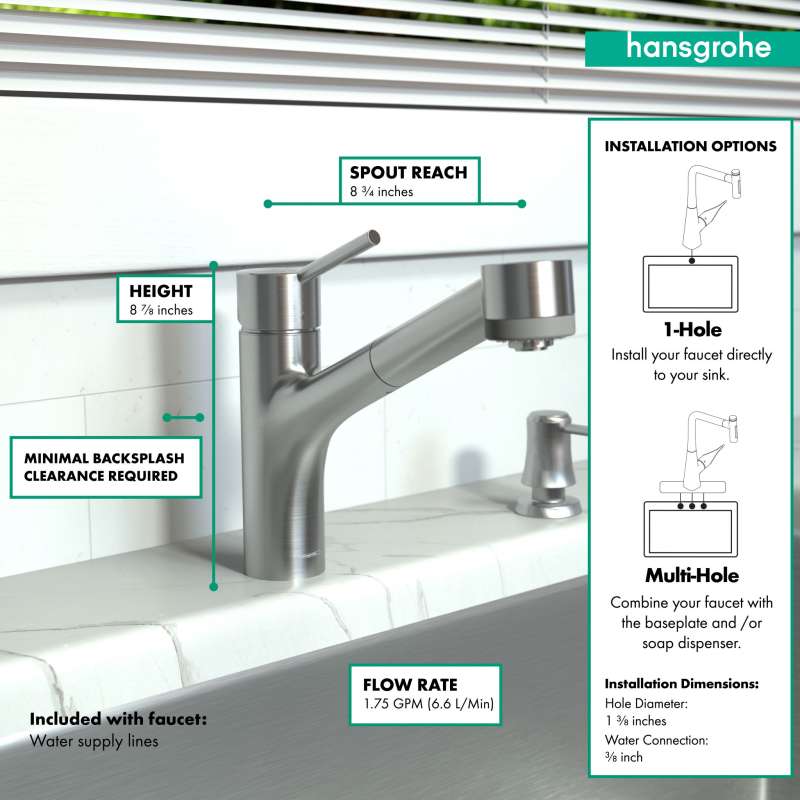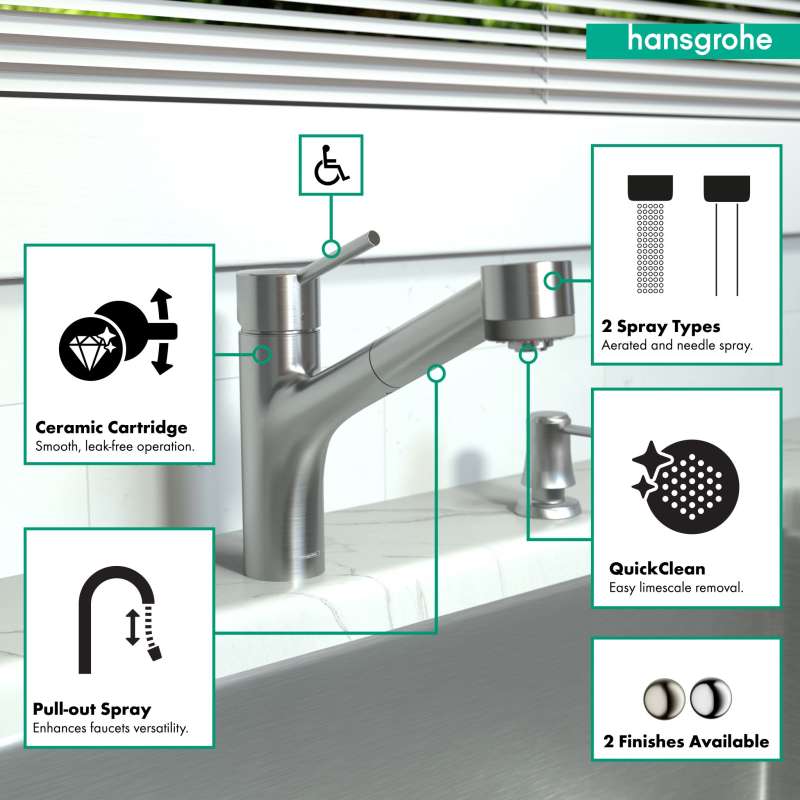 • Hansgrohe Talis S Kitchen Faucet, 2-Spray Pull-Out, 1.75 Gpm In Stainless Steel Optic, 6462860 Stainless Steel Optic