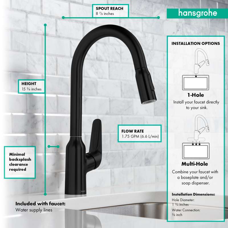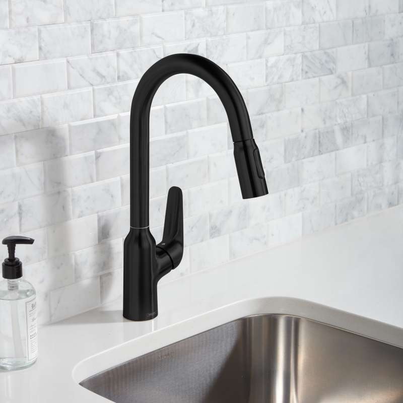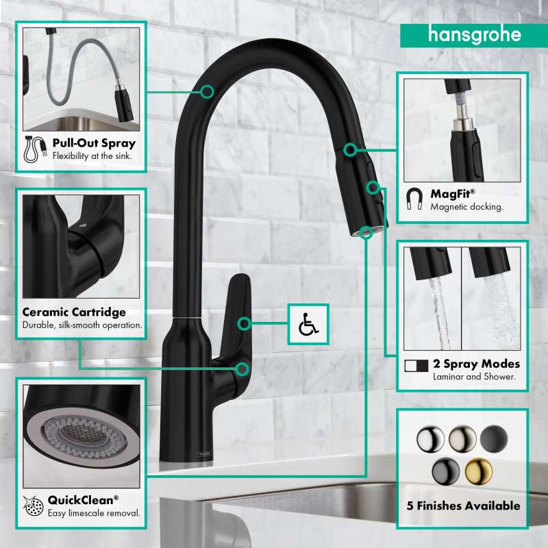 • Hansgrohe Focus N Higharc Kitchen Faucet, 2-Spray Pull-Down, 1.75 Gpm In Matte Black, 71800671 Matte Black