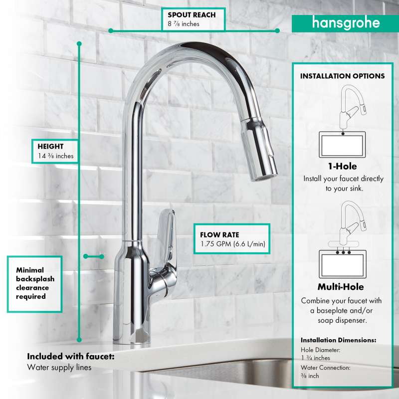 Hansgrohe Focus N Prep Kitchen Faucet, 2-Spray Pull-Down, 1.75 Gpm In Chrome, 71801001 Chrome