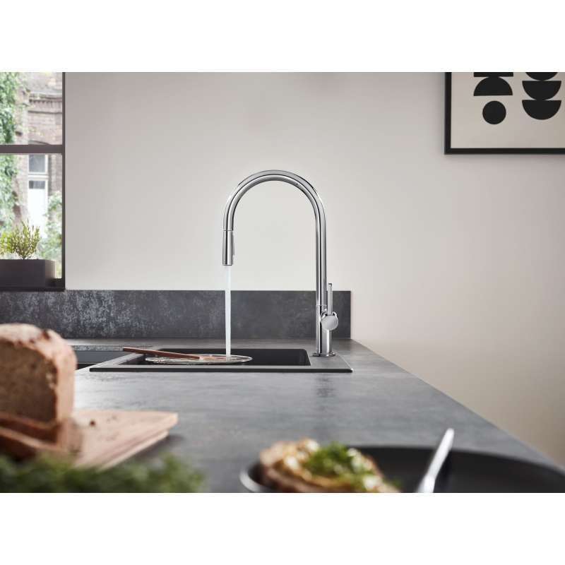 • More comfort: with pull-out spray for a larger range of action and targeted rinsing of fruit and vegetables