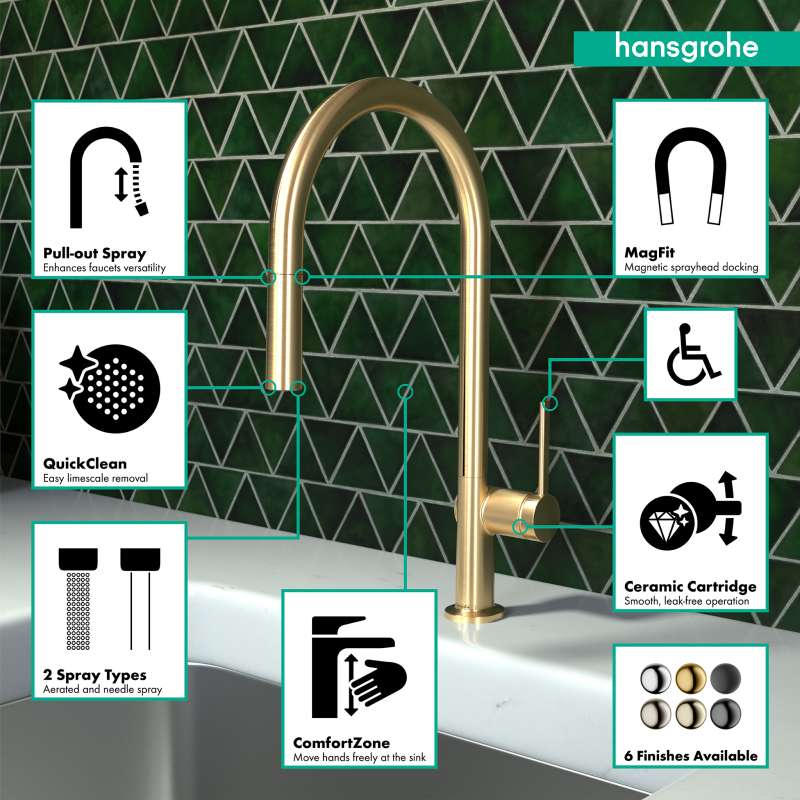 • Hansgrohe Talis N Higharc Kitchen Faucet, O-Style, 2-Spray Pull-Down, With Sbox,1.75 Gpm In Brushed Gold Optic, 72801251 Brushed Gold Optic