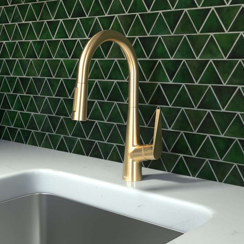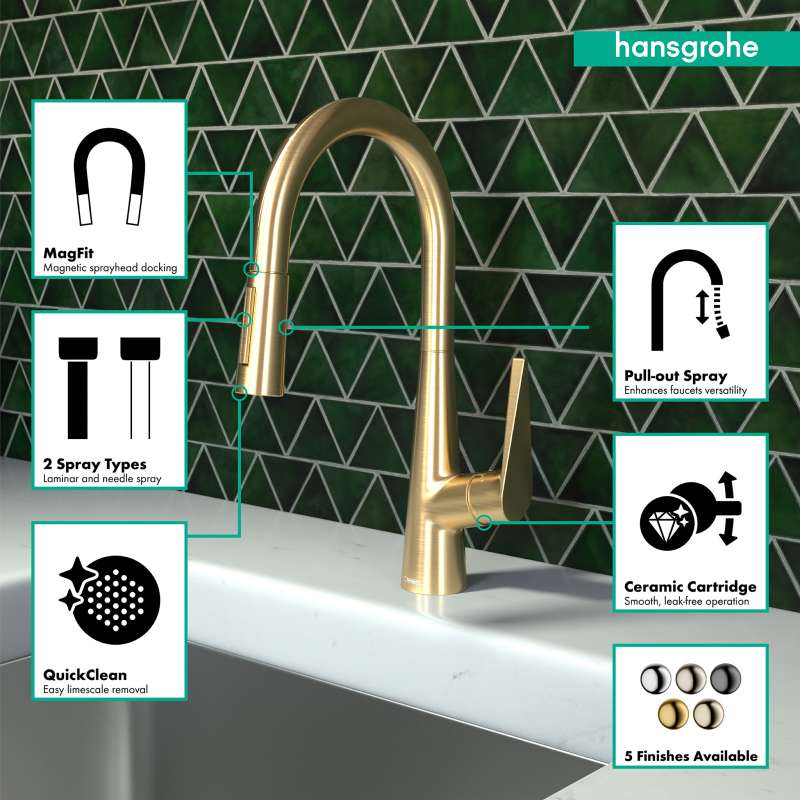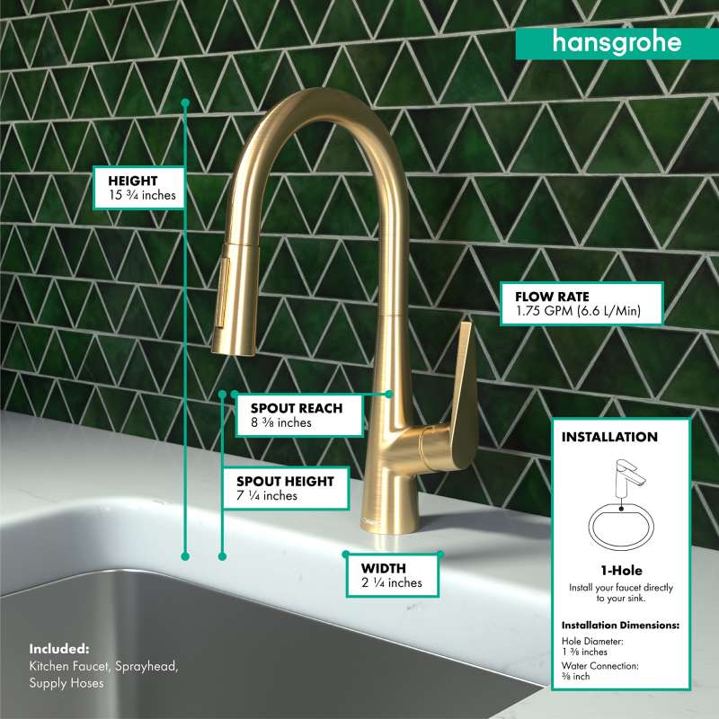 • Hansgrohe Talis S Higharc Kitchen Faucet, 2-Spray Pull-Down, 1.75 Gpm In Brushed Gold Optic, 72813251 Brushed Gold Optic