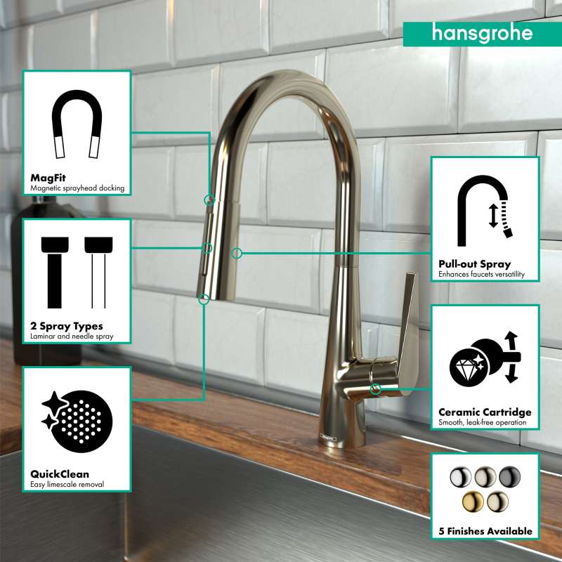 • Hansgrohe Talis S Higharc Kitchen Faucet, 2-Spray Pull-Down, 1.75 Gpm In Polished Nickel, 72813831 Polished Nickel